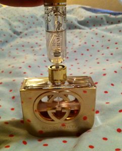 I have heard a lot about the Travalo atomizer online and how it is suppose to be the bestest (yes, I said bestest) on the market. I love that you never have to actually spray the perfume into the atomizer…it is easily filled with this small suction device at the base of the Travalo!