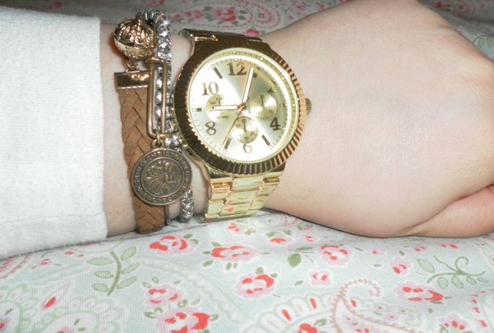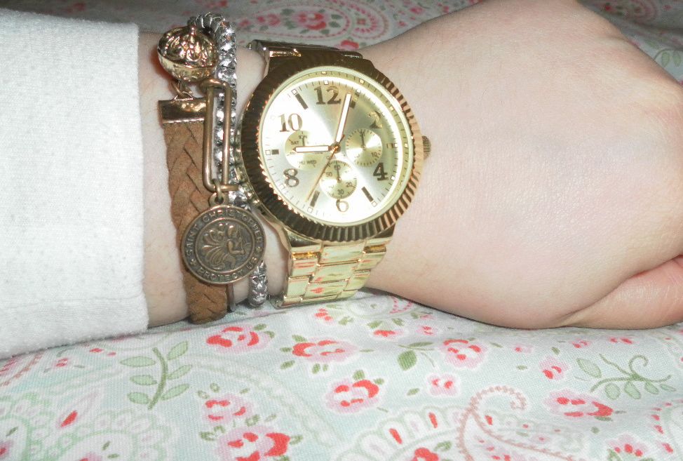 It’s super big, super shinny and super gold! I sorta feel like an Italian mobster should be wearing this watch…which makes me love it even more!! Lately, I have been stacking it with all of my other bangles and I have been loving the look!