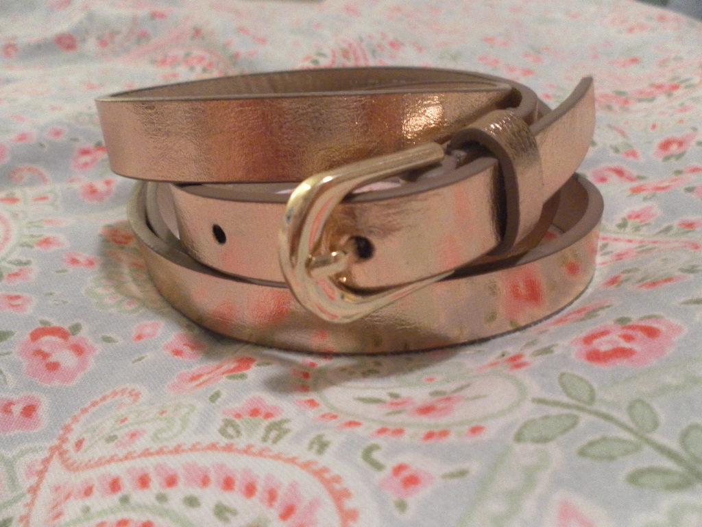 The first belt is a really pretty metallic rose gold with a rose gold buckle.