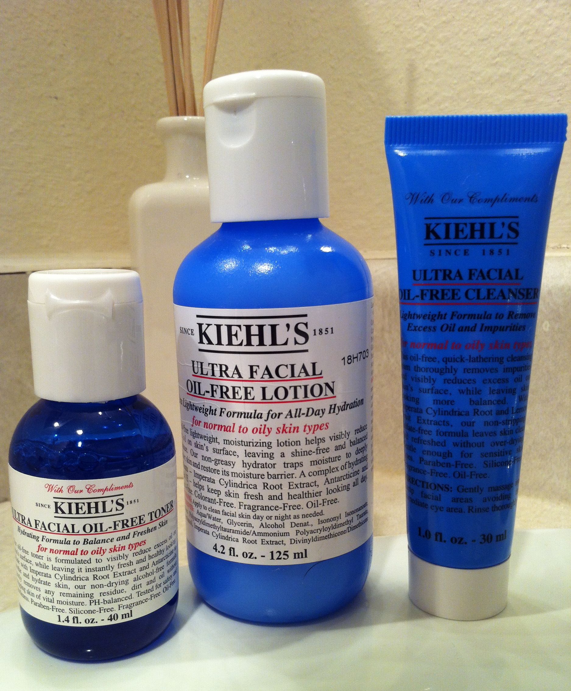 I love Kiehl’s products…everything from their Creme de Corps Soy Milk & Honey Whipped Body Butter to their infamous lip balms. So when they came out with their Ultra Facial Oil-Free 3 Step Kit I purchased myself a set!