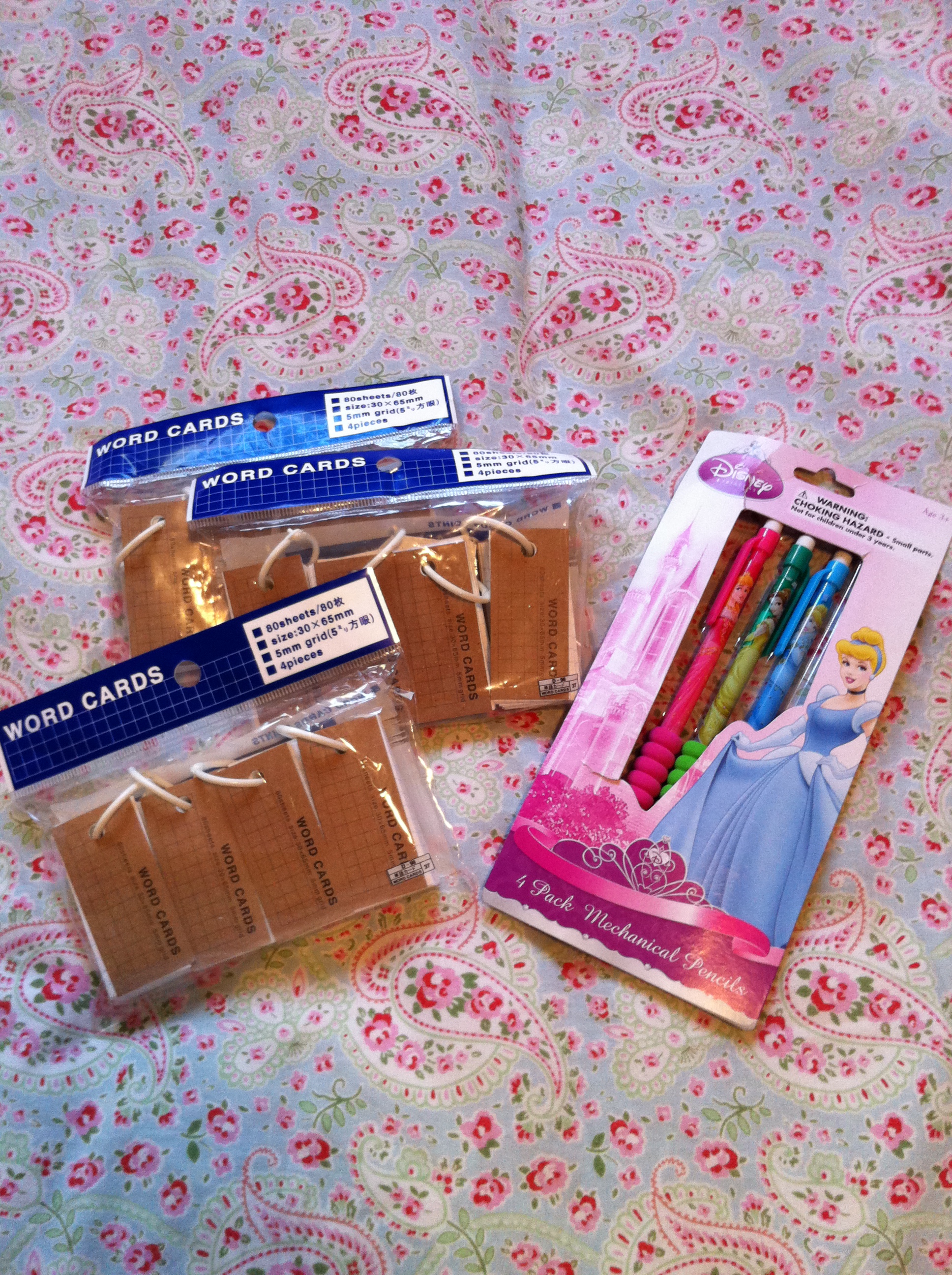 And lastly I was down in the International District and picked up these fun note cards to use as flashcards, some Disney Princess mechanical pencils and these individual razors to use to clean up the baby hairs between getting my eyebrows “did.”