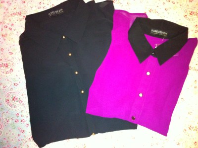 And I have been loving the woven collared shirt trend.  So I picked these up as well when I was at Forever 21.  I predict a few OOTD posts in the near future. :)