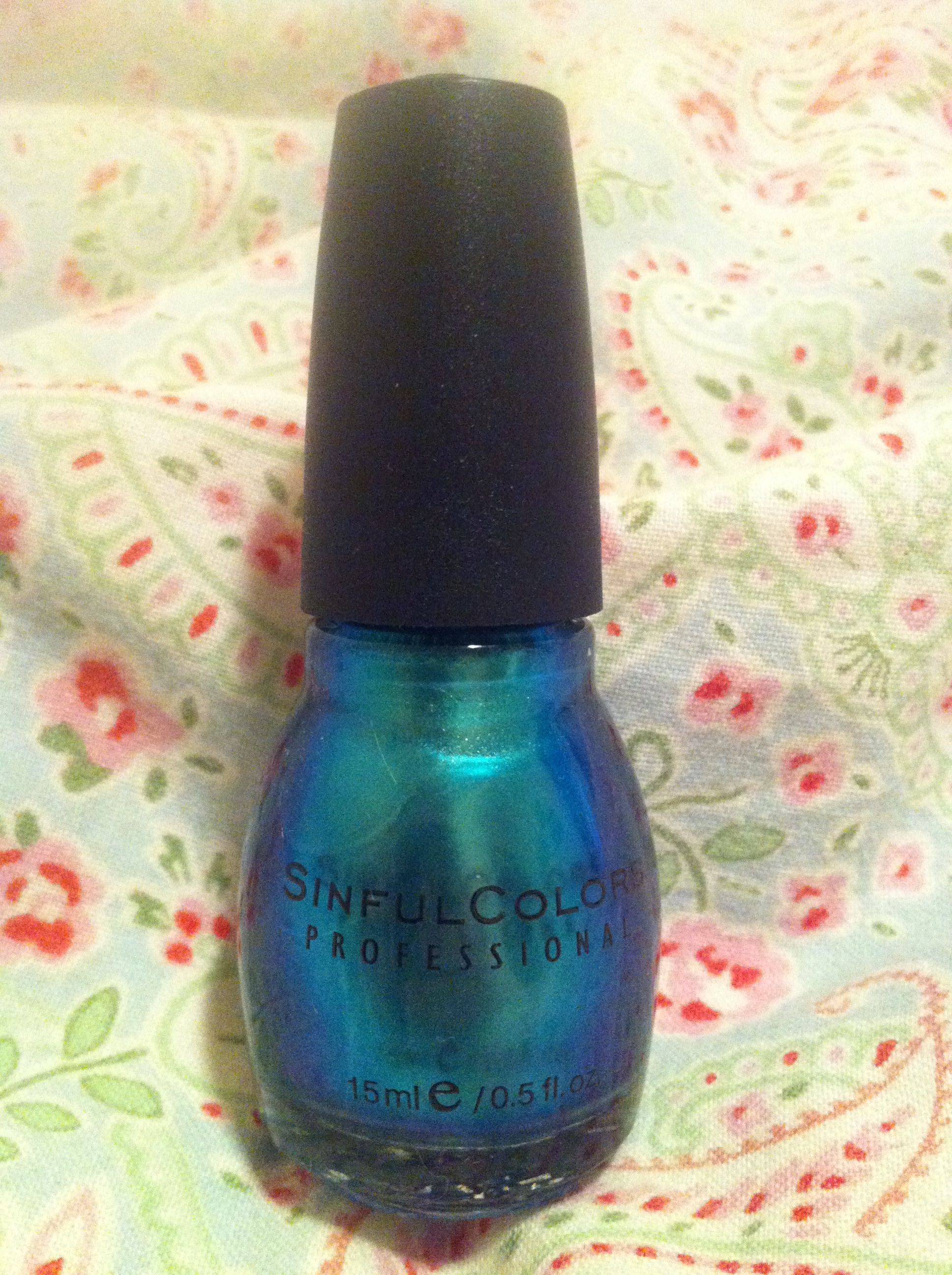 I have been really loving the dark aqua-blue dual chrome nail polishes out there…especially Butter London’s Bluey Nail Lacquer. But I honestly didn’t want to spend $15 on a polish I would most likely only use 3 or 4 times. Hence the reason I picked up this Sinful Colors version in color Gorgeous #804 at only $1.99; so incase I didn’t like the look I could just toss it.