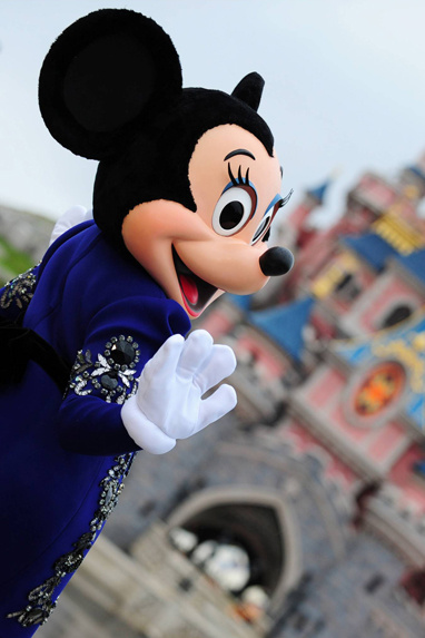 For the Paris Disneyland opening this past weekend, Minnie Mouse did away with her usual red and white polka dot dress and was decked out in a custom studded and jeweled gown made by Lanvin designer Alber Elbaz.