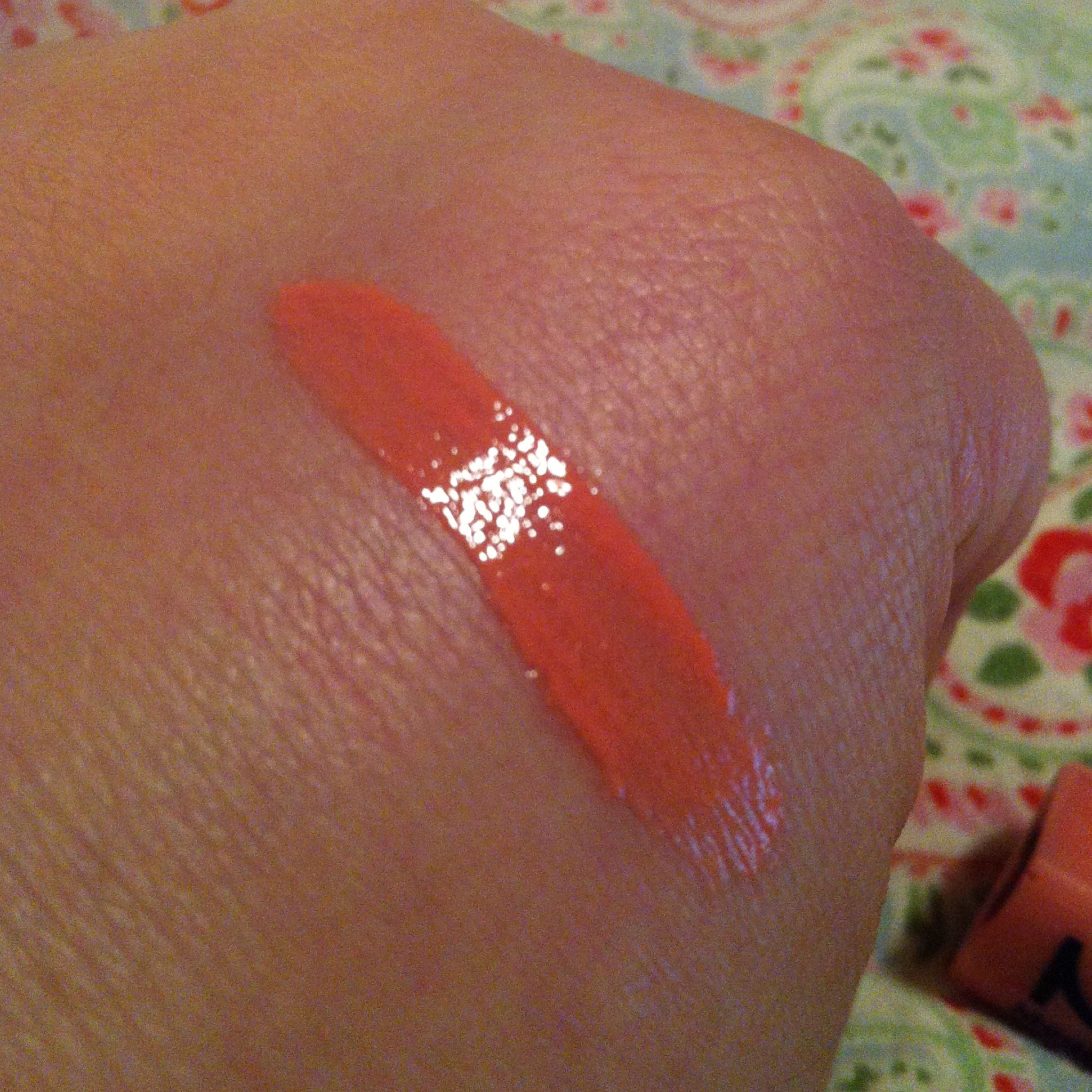 It is kind of hard to tell in the picture but the gloss is completely matte and is a lot less “peachy” in person. I have a feeling if you like NARS Turkish Delight you will really like this NYX color.