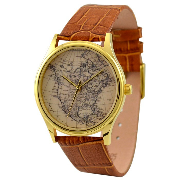 Lately, I have been on the hunt for a watch with a map background.  I am thinking of something more along the lines of an oversized mens watch…something with a leather band and a little wear.